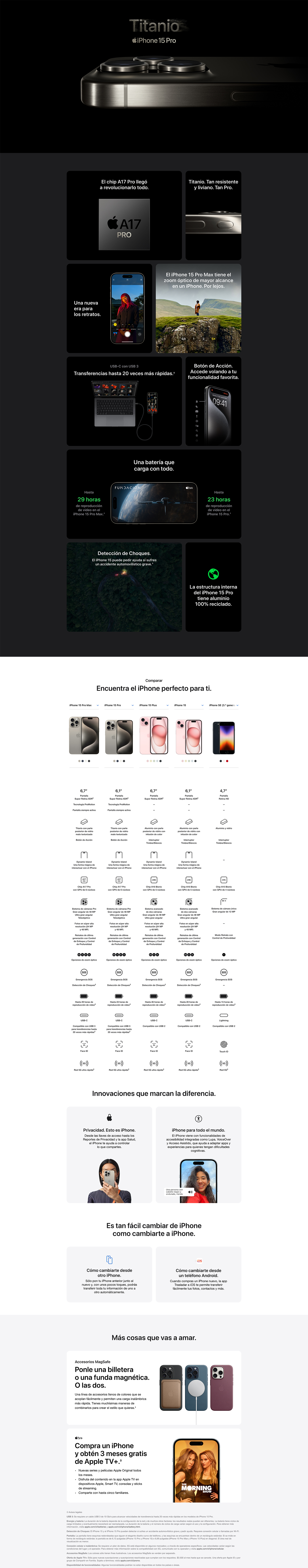 Procesador Procesador Chip A17 Pro. Nueva CPU de 6 núcleos con 2 núcleos de rendimiento y 4 de eficiencia